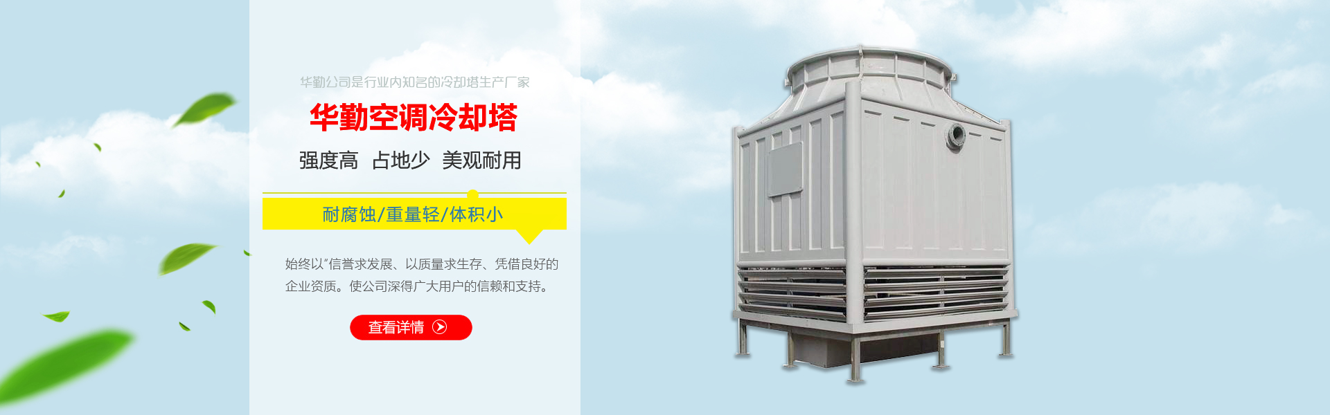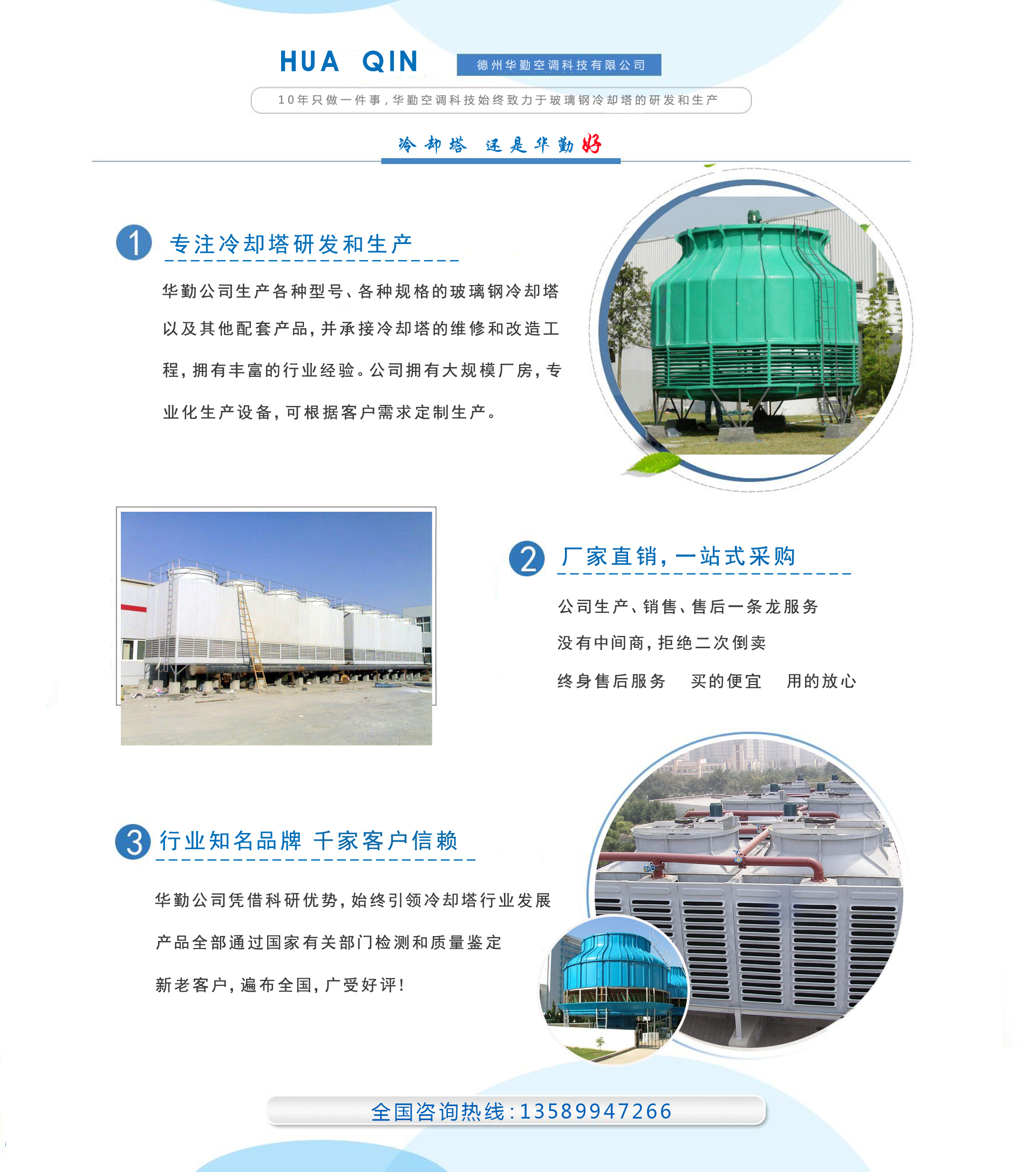 公司主要產品有各種型號、規格的玻璃鋼冷卻塔,圓形玻璃鋼冷卻塔,方形玻璃鋼冷卻塔,逆流式玻璃鋼冷卻塔,橫流式玻璃鋼冷卻塔,節能型冷卻塔,工業型玻璃鋼冷卻塔,同時生產經營各種規格的冷卻塔填料、冷卻塔風機、冷卻塔電機、減速機、布水器、噴頭、玻璃纖維布等玻璃鋼冷卻塔配件,并承接玻璃鋼冷卻塔改造及維修業務。